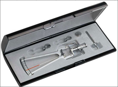 A masterpiece of precision mechanics! Highly precise eye tonometer according to Prof. Schiötz for measuring intra-ocular pressure. Its reliability and durability makes this quality measuring instrument indispensable in every ophthalmologist’s practice and eye clinic. |
