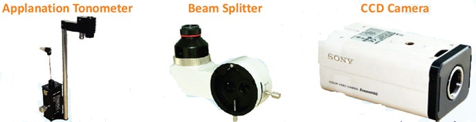 The Applanation Tonometers are accesories for Slit Lamps and serves to measure ocular pressure. Type OP-1H can be mounted on 2 supporting pivot on top of the binocular microscope can be mounted on a plate in the slit lamp biomicroscope arm.
