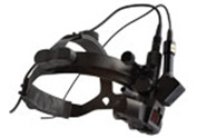 Headband version, with built-in battery compartment and integral charge jack, can be optionally fitted with 2 lithium batteries size CR 123 A, 4 batteries size AAA (alkaline) or 4 rechargeable batteries size AAA (NiMH).