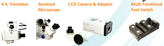 Green Laser comes with an extensive range of Slit Lamp Delivery Adapters (SLA) to suite, Zeiss, Haag-Streit (and clones), and LightMed Laser slit lamps. Parfocal 50- 50µm continuously variable spot size with or without micromanipulator option. | ![]() |